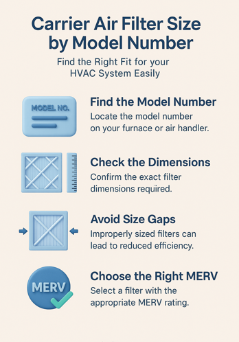 Takeaway: Even small size mismatches create big problems. Using your Carrier model number ensures accuracy, saves money, and keeps your system running efficiently.